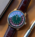 Meet the Heryi Watch : a statement piece where refined aesthetics meet precision. Its striking dial features a distinctive layout inspired by classic games of chance, framed by a polished stainless steel case. The secure, textured band, crafted from supple brown material, ensures all-day comfort. With luminous hands, multiple sub-dials for elapsed time, and a reliable quartz movement, this watch is designed for those who appreciate sophisticated detail and functional elegance.