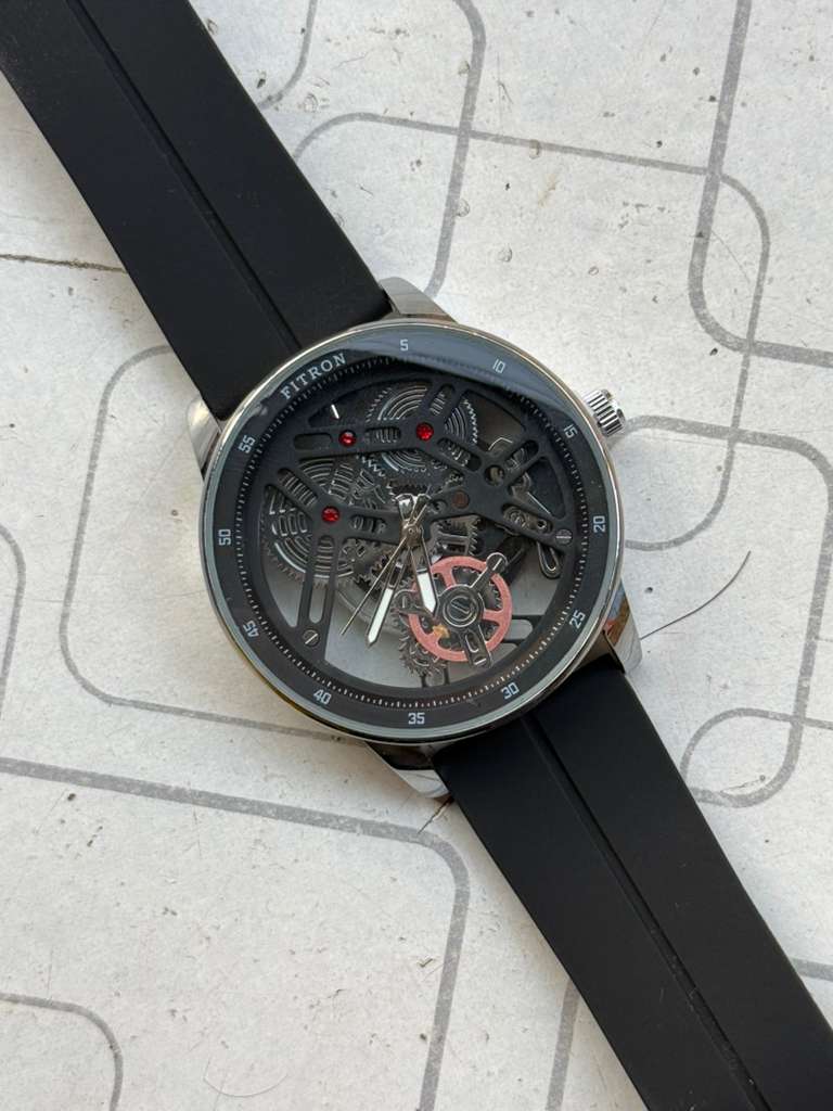 Experience cutting-edge style and innovation with the Fitron Watch, featuring a sleek transparent dial that reveals the intricate machinery inside. Designed for modern tech enthusiasts, this watch combines futuristic aesthetics with practical functionality.