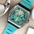 RM-Inspired Design: Bold, geometric case and skeleton dial for a luxury race-ready look.