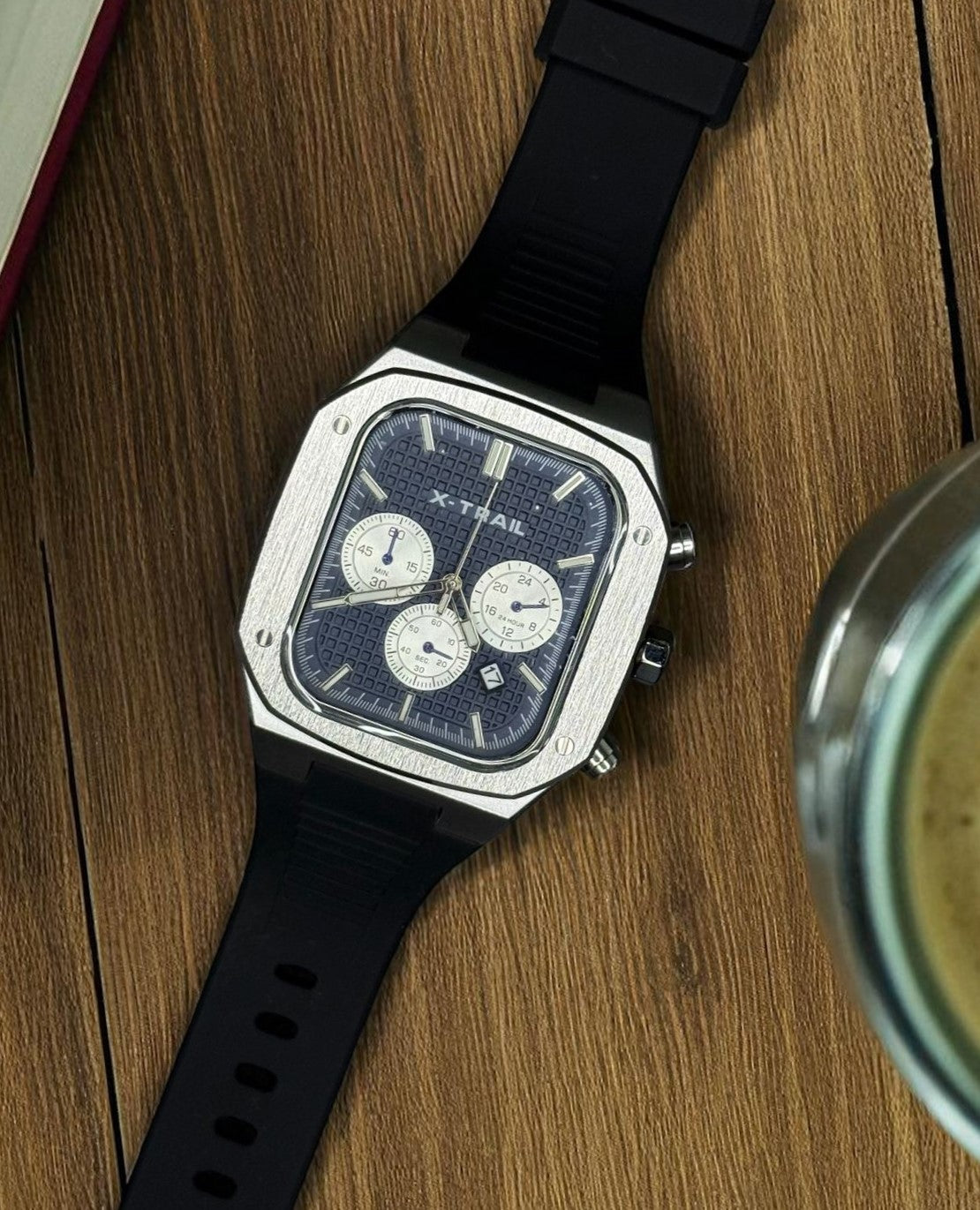 The X-Trail Chronograph: Sporty, precise, and built for action. This watch combines a comfortable silicone strap with a multi-functional chronograph machine to track your time with style and accuracy. It's the perfect blend of rugged utility and modern design.